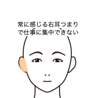 2週間前から右耳がこもる感じがして「ボワー」と聴こえる。右の首から肩甲骨付近に、普段はあまり感じないが凝りを感じる。