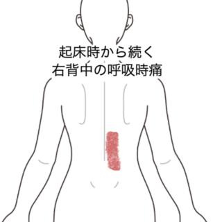 3日前の起床時、ふと慌てるように起きるといつもしない動作だったこともあり背中にピキッと鈍い痛みを覚えた。その場限りだったこともあり気にせず過ごしていたがその日の仕事中に下の物を取ろうと中腰状態で抱えようとしたときに背中の痛みが再発した。左足を触るように左に捻じると痛く、右の動きは問題ないことから筋肉的なトラブルと考え来院に至った。