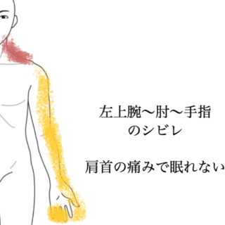 初診時の触診では、前胸部の緊張が強く、左肩が内旋している状態が確認された。施術では、背中や手足のツボを使用し、主に前胸部の緊張を緩めることを目的とした鍼を行った。初回の施術後、症状は完全に消失し、痛みやしびれがなくなった。その後、症例者から症状の再発や新たな症状の報告は特にない。