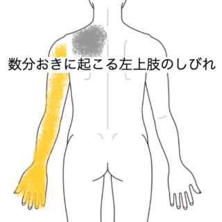 左肩前側の痛みと左母指の痺れを主訴に来院。肩の症状は安静時には痛みがないものの、腕を後ろに持っていく動作や物を取ろうとする際に痛みが出現する。母指の痺れは物に触れた時に感じる状態であった。また、首を右に側屈した際に左肩に痺れに近い痛みが確認された。加えて、便秘傾向があり食後の腹部膨満感も伴っていた。これらの症状により、仕事中のタイピング作業に支障をきたし、肩の痛みによるストレスを感じている状態であった。