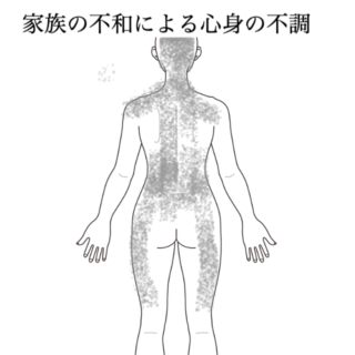寝不足・噛みしめで身体全体が力み、疲労の蓄積により腹部もさらに過緊張し息が浅くなって力の抜けない状態になっていったと思われる。