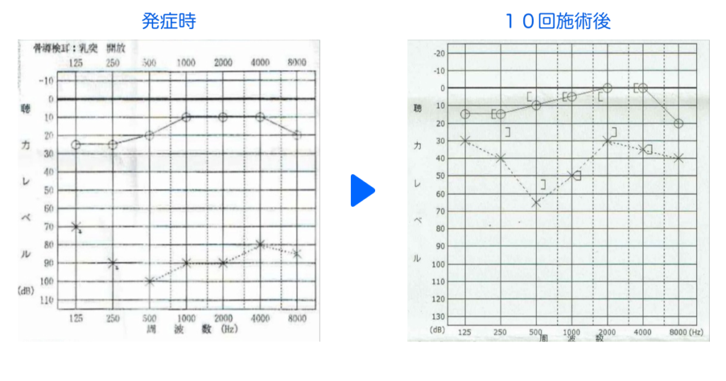 身体の緊張を解き、呼吸を深くして血流を耳の奥に集中させることを主に施術を行うことで症状が回復に向かう手助けになった。